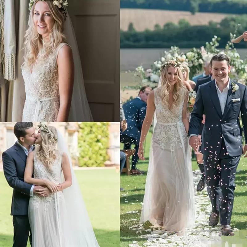 Boho Country Style Wedding Dresses Vintage Fairy Lace Floral V-neck Full length Country Beach Garden Bridal Gown