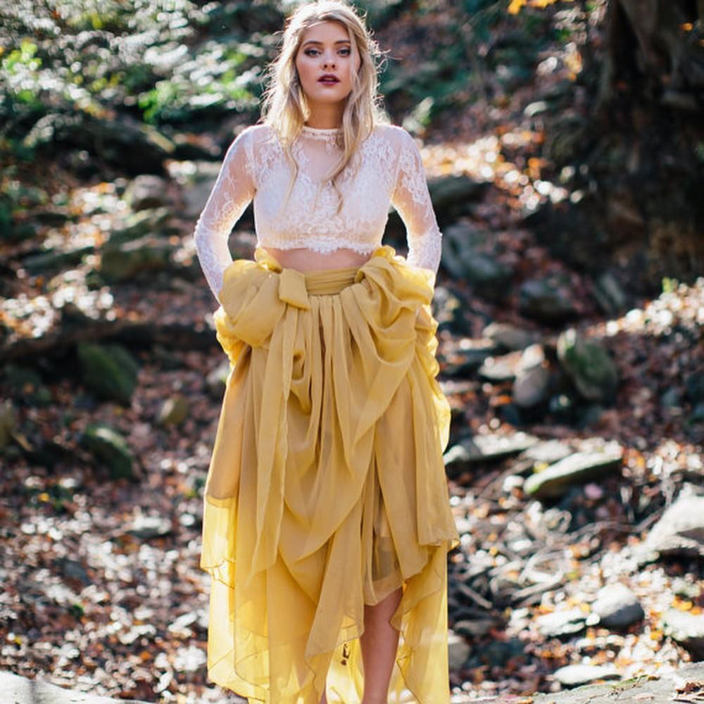 Cheap Country Boho Two Piece Wedding Dresses A Line Tulle Skirt Sweep Train Country Bridal Gowns
