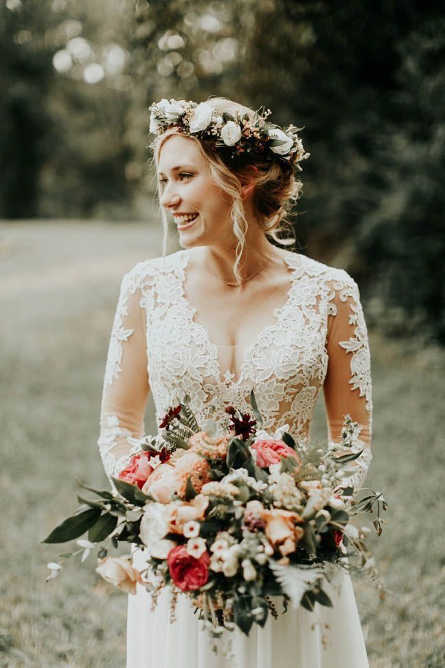 Deep V Neck Wedding Dresses Bridal Gown with Sleeves