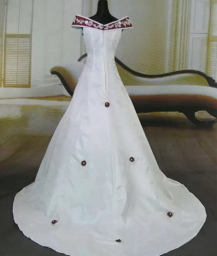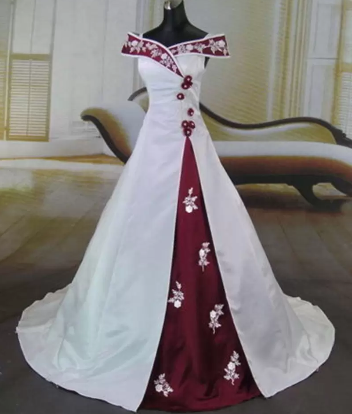 White and Red Wedding Dresses Off Shoulder Flowers Applique Satin A-line Bridal Gowns