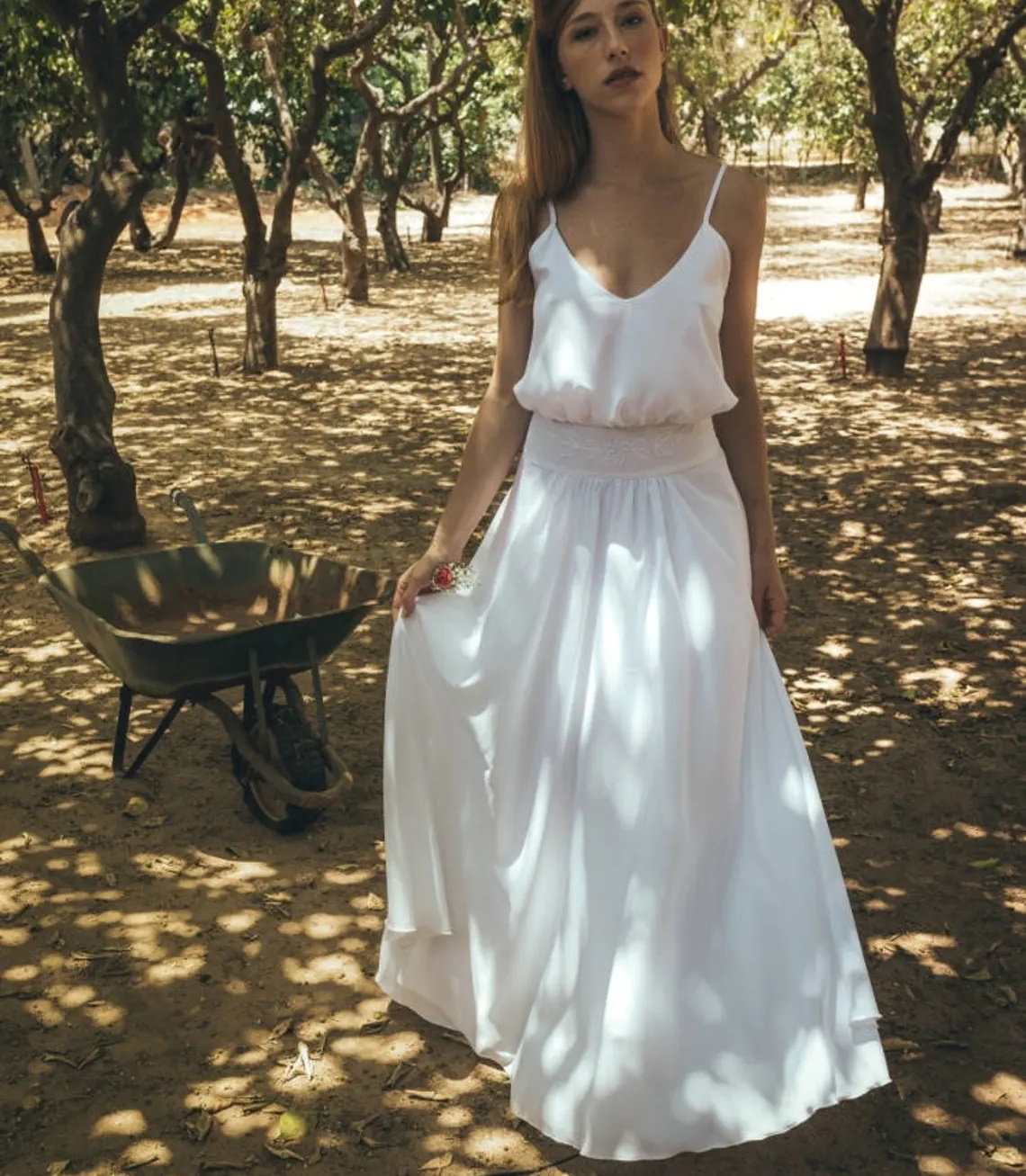 V-Neck Spaghetti Straps Floor Length Bohemian Beach Chiffon Open Back Wedding Dress