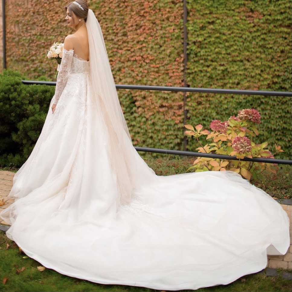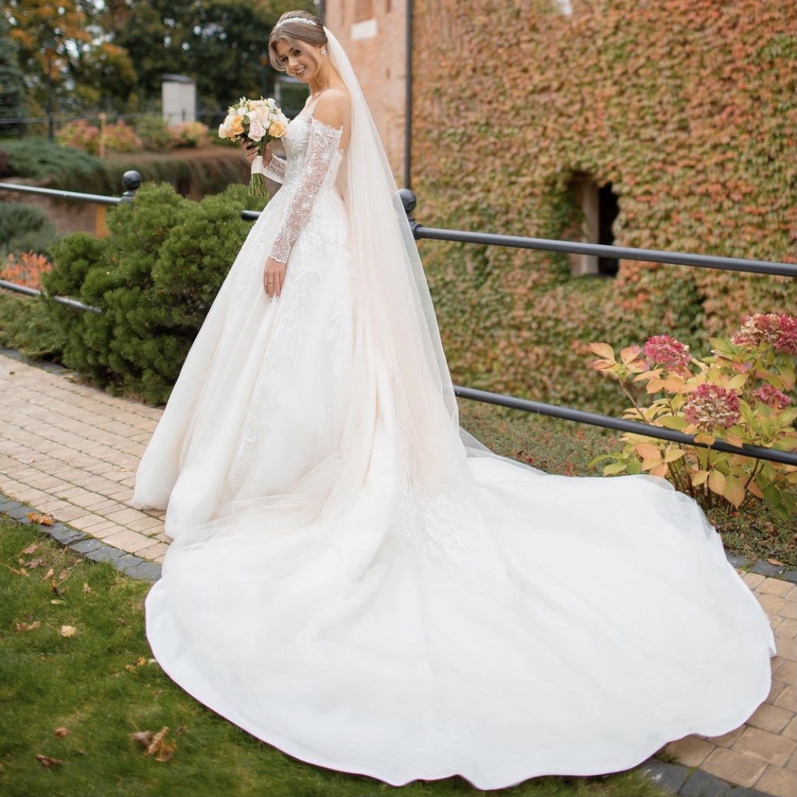 Wedding Dress Ball Sheer Neck Full Sleeve Lace Appliques Sequined Beads Backless Floor Length Sweep Train Gorgeous Bride Gown