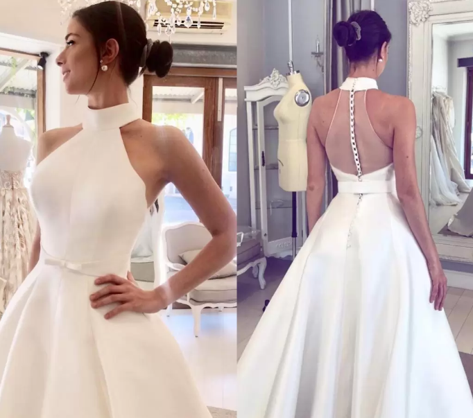 Simple Wedding Dresses Sheer Backless Covered Button Cheap Long Floor Length Bridal Gowns
