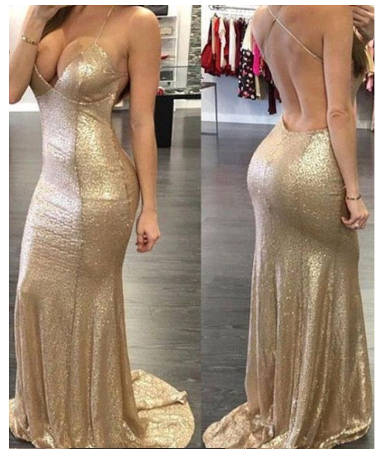 Gold Prom Dress,Floor Length Prom Dress,Prom Dress with Train