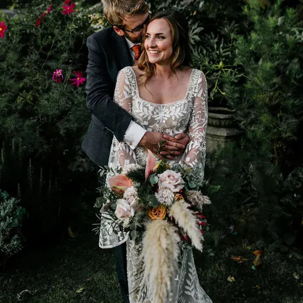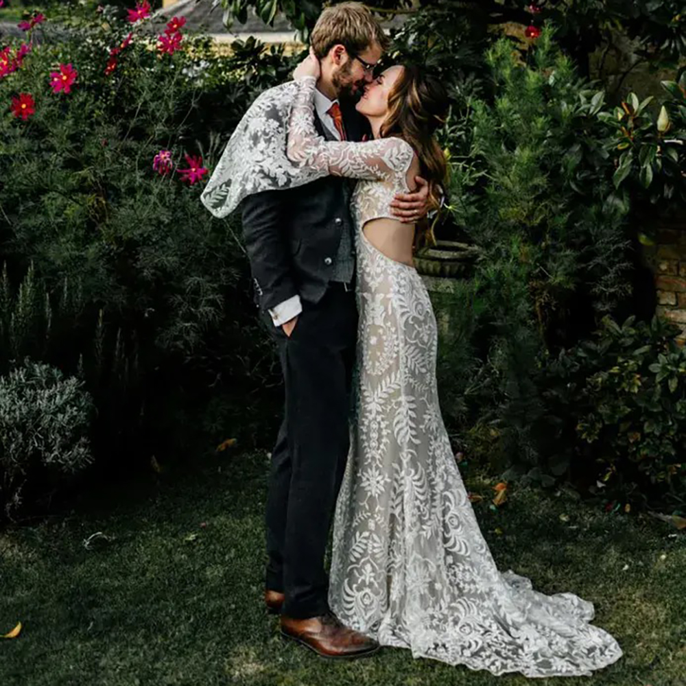 Boho Long Batwing Sleeves Lace Wedding Dress Drop Ship Custom Made Mermaid Rustic Beach Square Neck Open Back Bridal Gowns