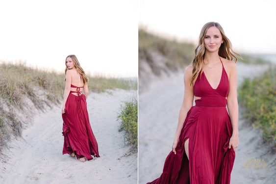 Dark Red Chiffon Long Beach Long Evening Party Dress