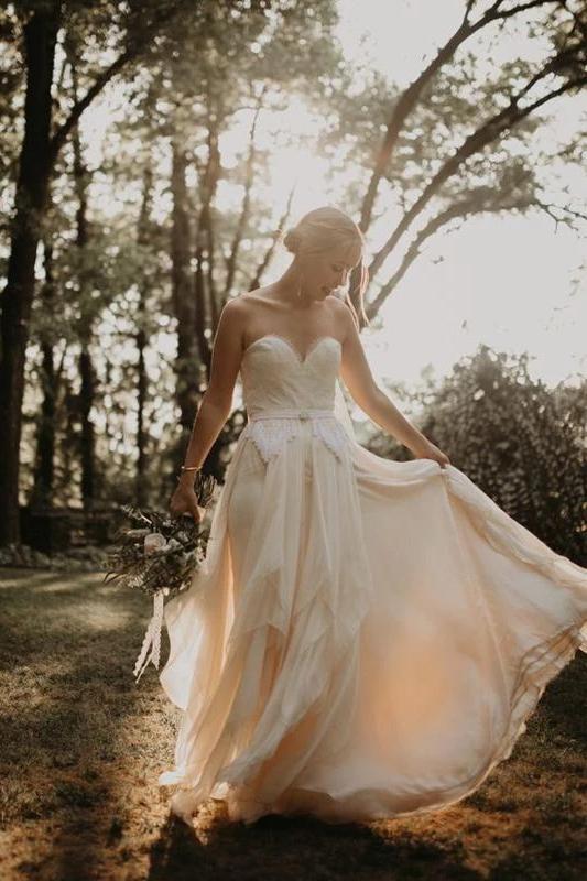 Elegant Strapless Sweetheart Ivory Chiffon Wedding Dresses Backless Wedding Gowns