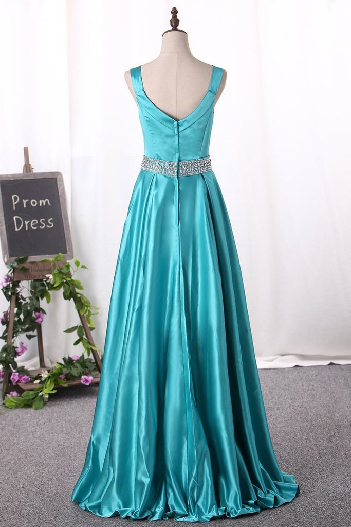 New Arrival A Line Prom Dresses Straps Satin With Beading