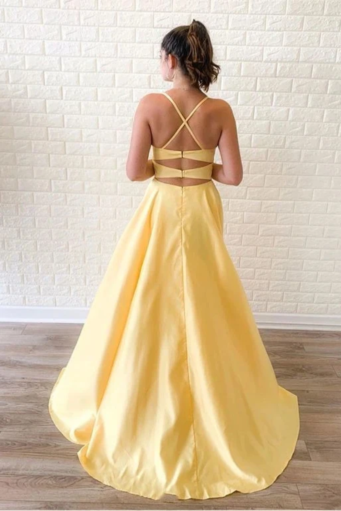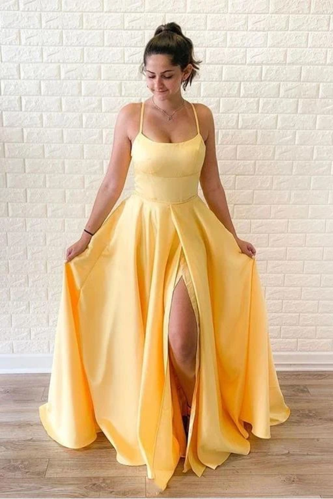 Simple Sleeveless Split Long Prom Dresses Cheap Sweep Train Evening Dress