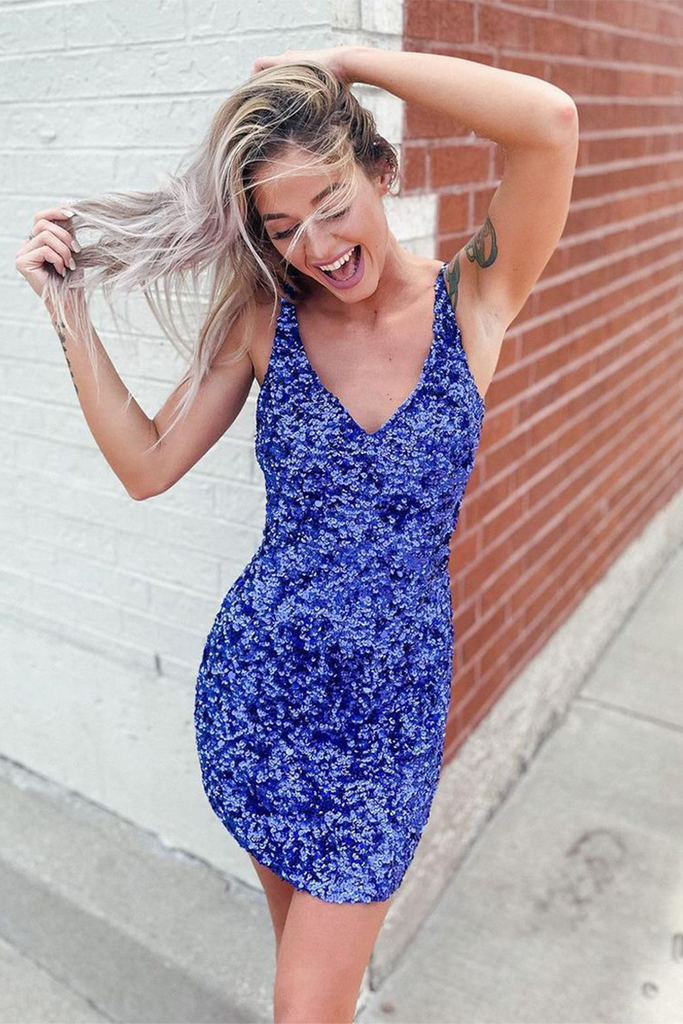 Glitter Blue Sequins Short Prom Dress Homecoming Party Dress