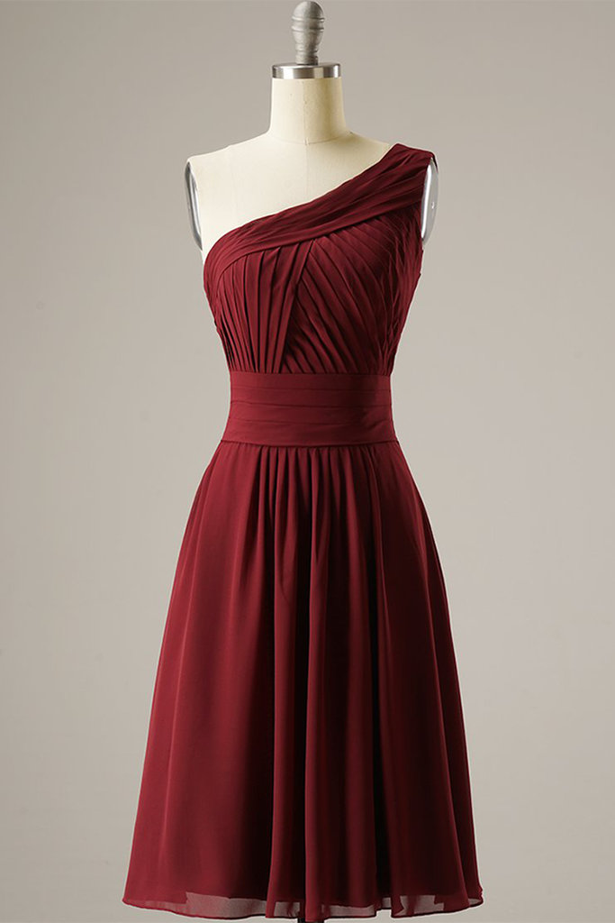One Shoulder Pleats Homecoming Dress Short Prom Dress