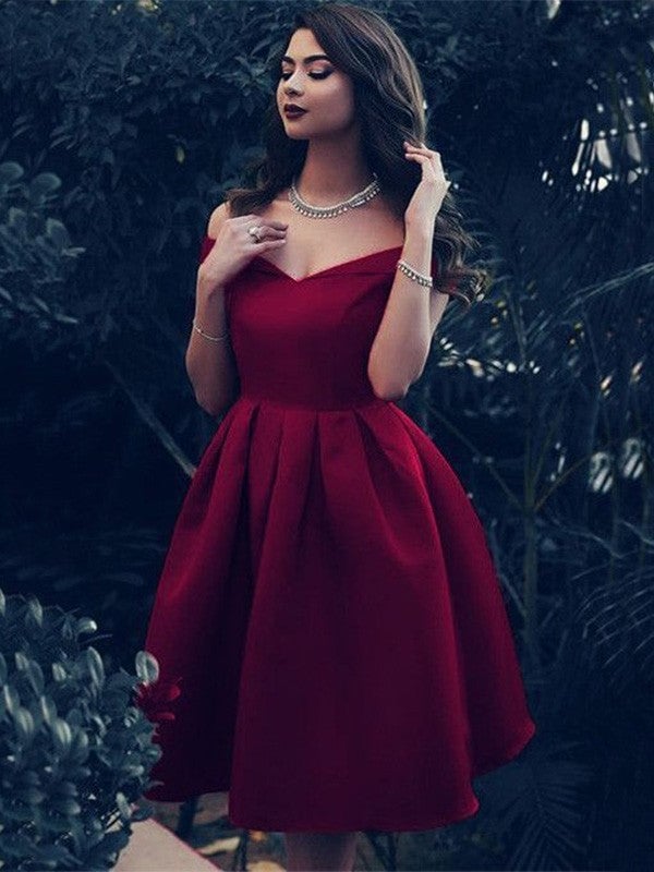 Princess Satin Ruffles Off-the-Shoulder Sleeveless Knee-Length Homecoming Dresses