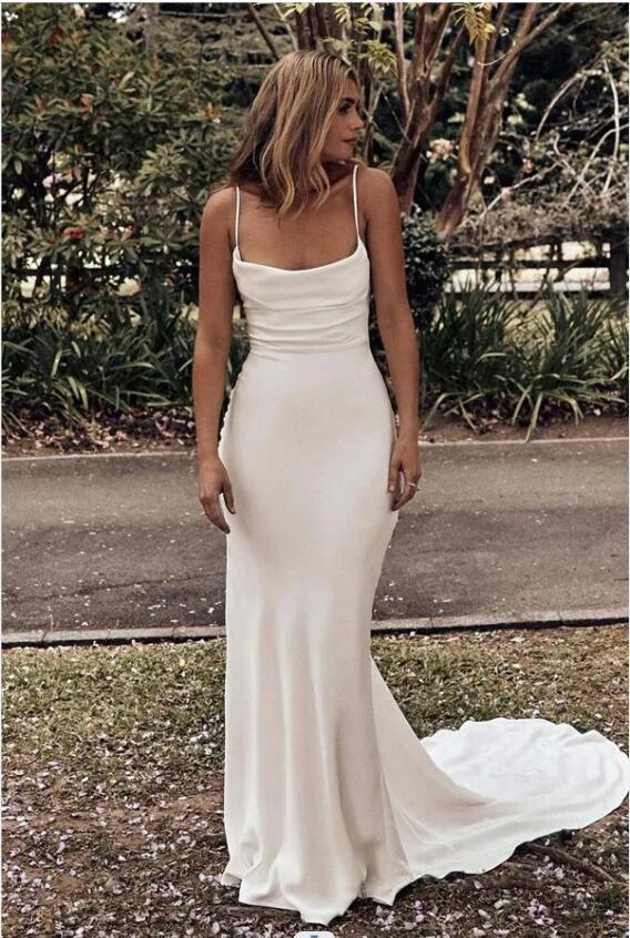 Simple Designed Boho Summer Beach Wedding Dresses Sexy Spaghetti Straps Backless Straps Long Bridal Gowns