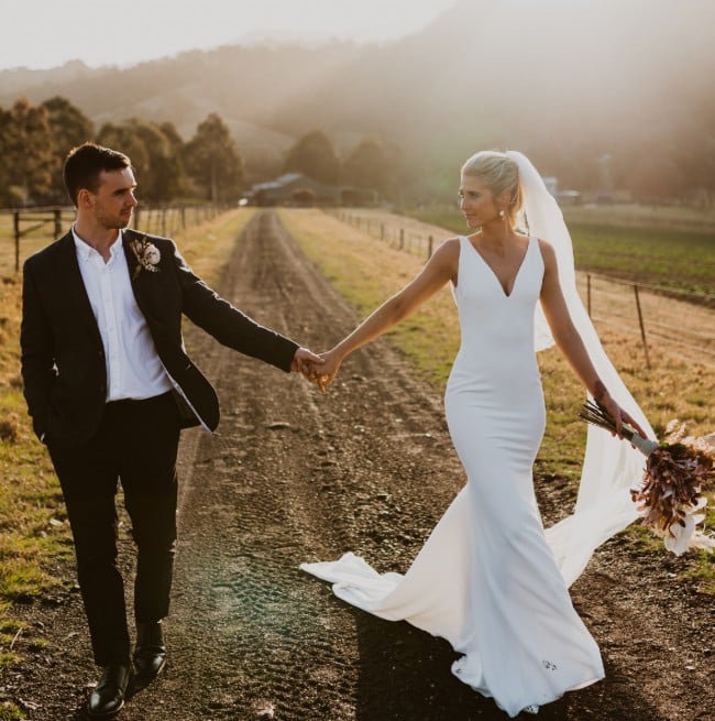 Simple Mermaid V Neck White Soft Satin Wedding Dress