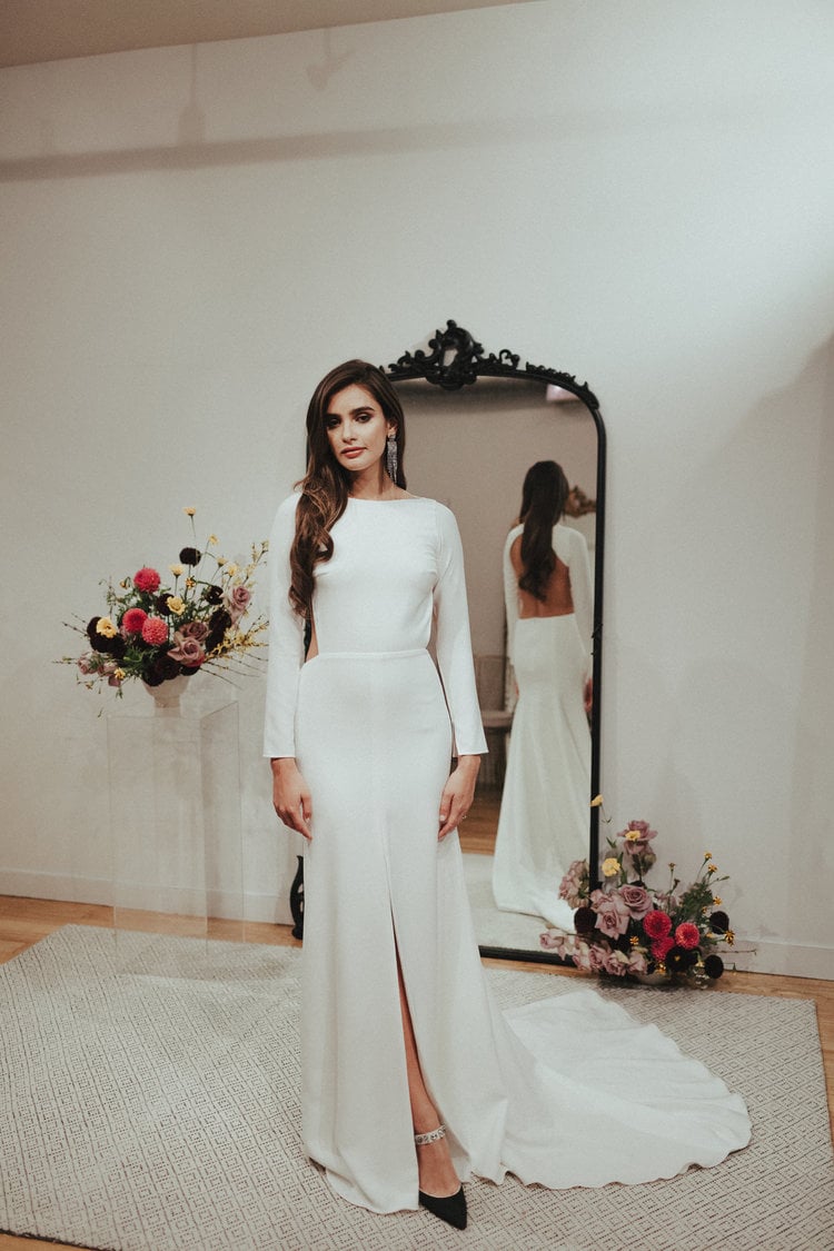 Simple Mermaid Wedding Dresses Crew Neck Long Sleeve Keyhole Back Bridal Gowns