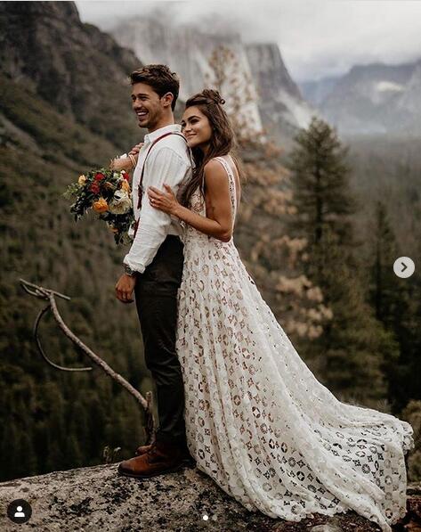 Summer Beach Boho Wedding Dresses Sexy Deep V Neck Simple Lace Bridal Gowns