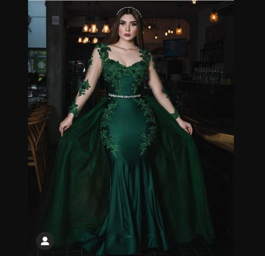 Charming Hunter Green Evening Dresses Mermaid Long Sleeves Lace Arabic Dubal Formal Prom Gowns