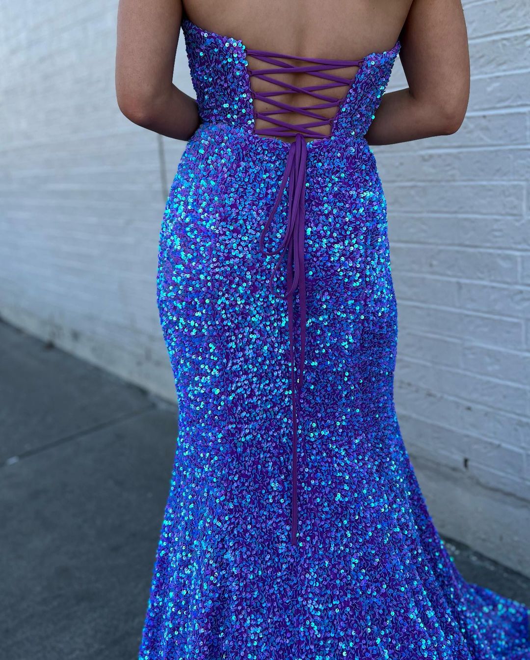 Cute Mermaid V Neck Blue Sequins Long Prom Dress