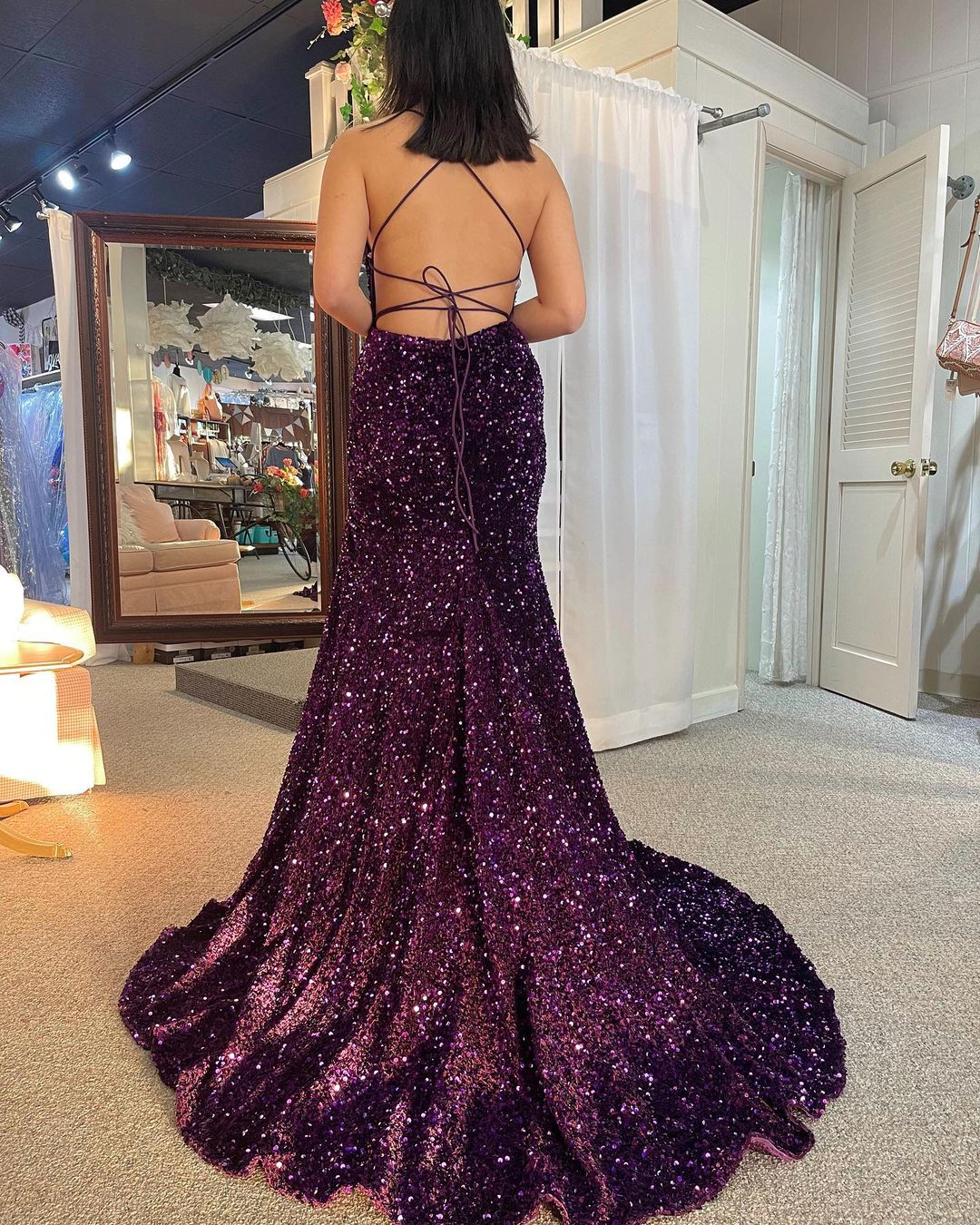 Cute Sparkly Mermaid Scoop Neck Purple Sequins Prom Dress