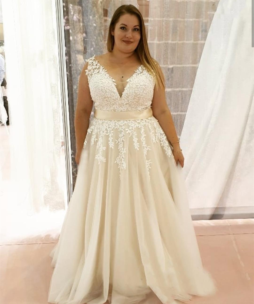 Custom Made V-Neck Sleeveless A-Line Bridal Gowns Lace Appliques Gorgeous For Large Size Brides Tank Dresses