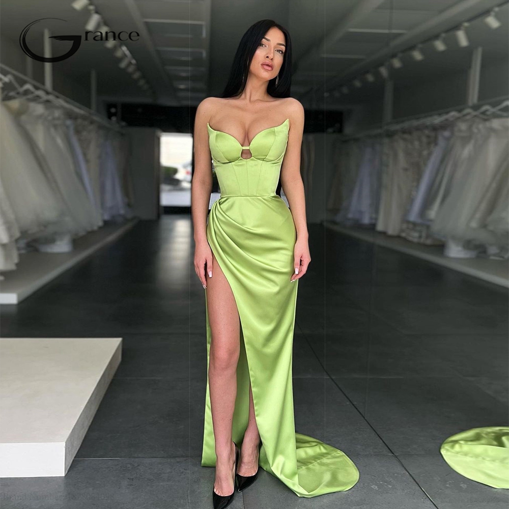 Asymmetrical Strapless Evening Dresses for Women Summer New Sleeveless Prom Gowns with Pleat Stretch Satin
