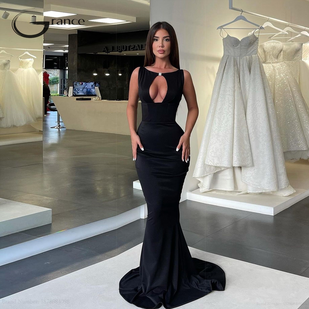 Black Mermaid Evening Dresses for Women Sleeveless Strapless Jersey Prom Gowns