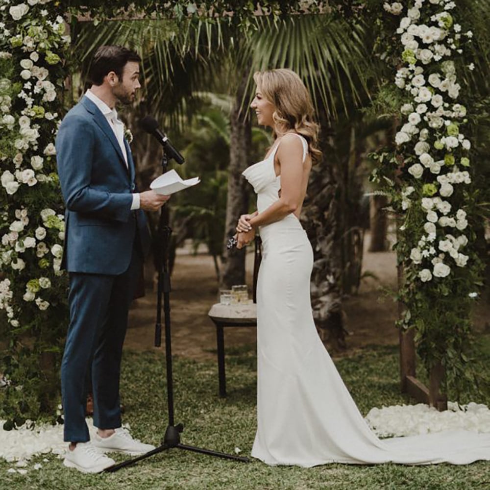 Chic Open Back Simle Crepe Minimalist Wedding Dress Drop Ship Custom Made Plus Size Drape Cowl Neck Sexy Buttons Bridal Gowns