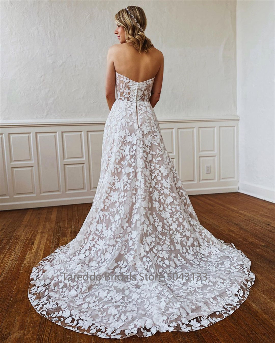Strapless See Through Bodice A-line Bridal Gowns Iovry Lace Champagne vestidos largos elegantes para mujer Bridal Gowns