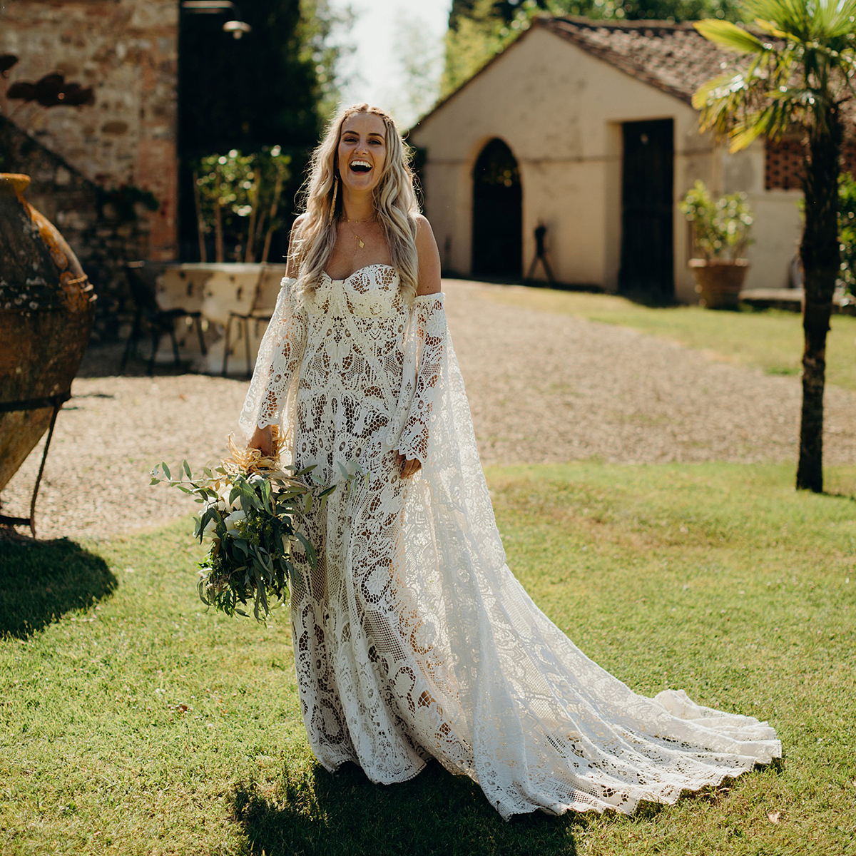 Long Batwing Sleeves Rustic Lace Wedding Dress Custom Made Plus Size Drop Ship Sweetheart Off Shoulder Backless Bridal Gowns