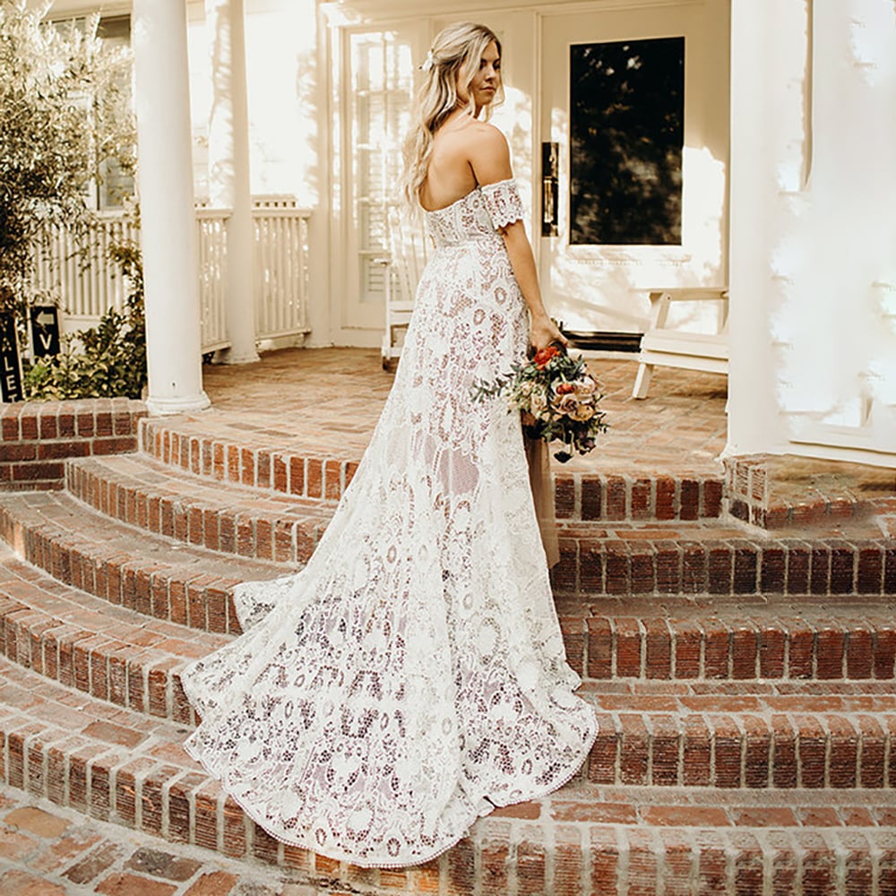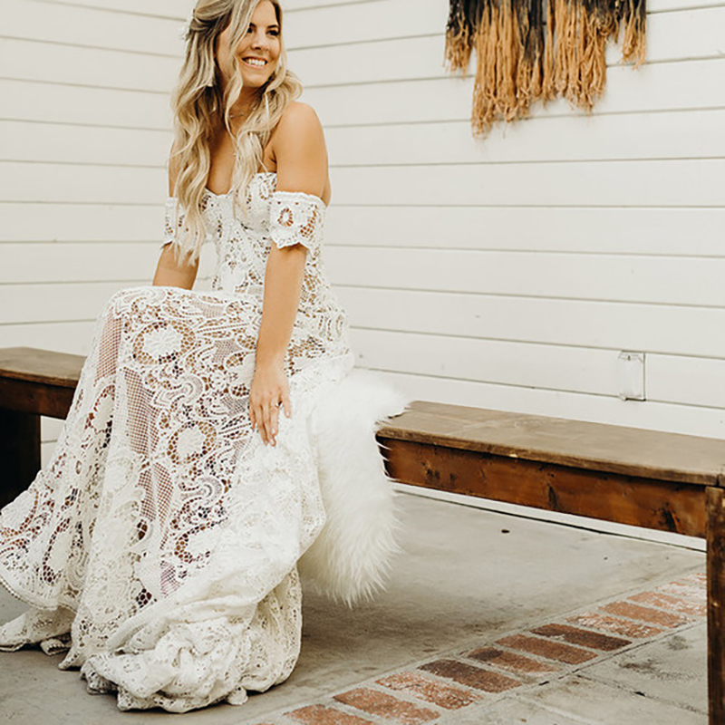 Sweetheart Cut Out Lace Off Shoulder Wedding Dress Custom Made Plus Size Drop Ship Photography Zipper Short SleevesBridal Gowns