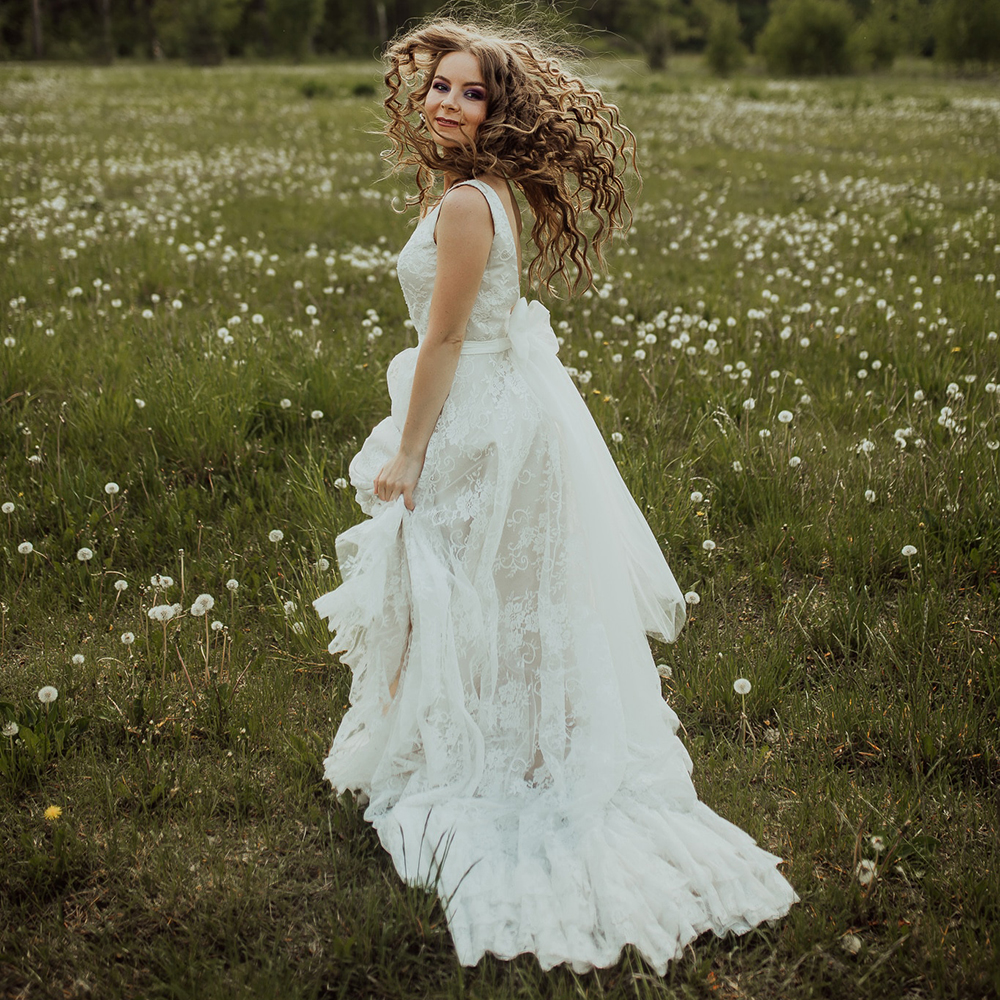 Open Back Lace Sleeveles Lawn Wedding Party Dress Custom Made Plus Size Romantic Garden Rustic Bow Sash V-Neck Beach Bridal Gown