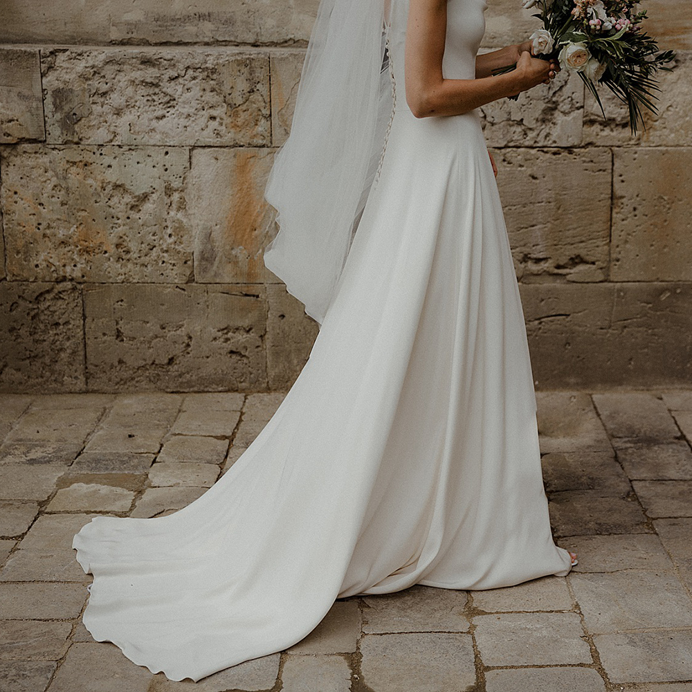 Simple Cheap Micro Satin Wedding Dress Custom Made Slim Fit A Line Buttons Up Plus Size Buttons Cap Sleeves Bridal Gowns