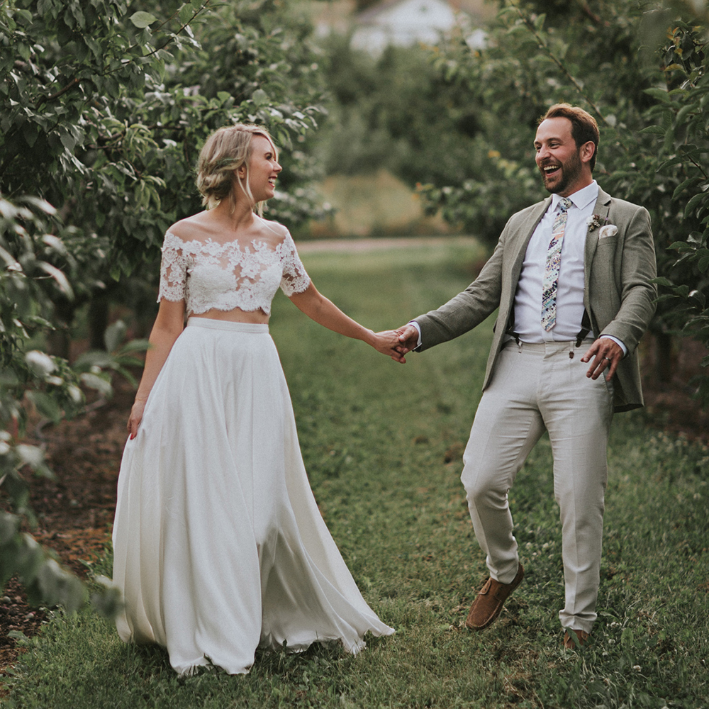 Two Piece Lace Wedding Separete Dress Crop Top Bohemian Buttons Custom Made Off Shoulder Maxi Beach Chiffon A Line Bridal Gown