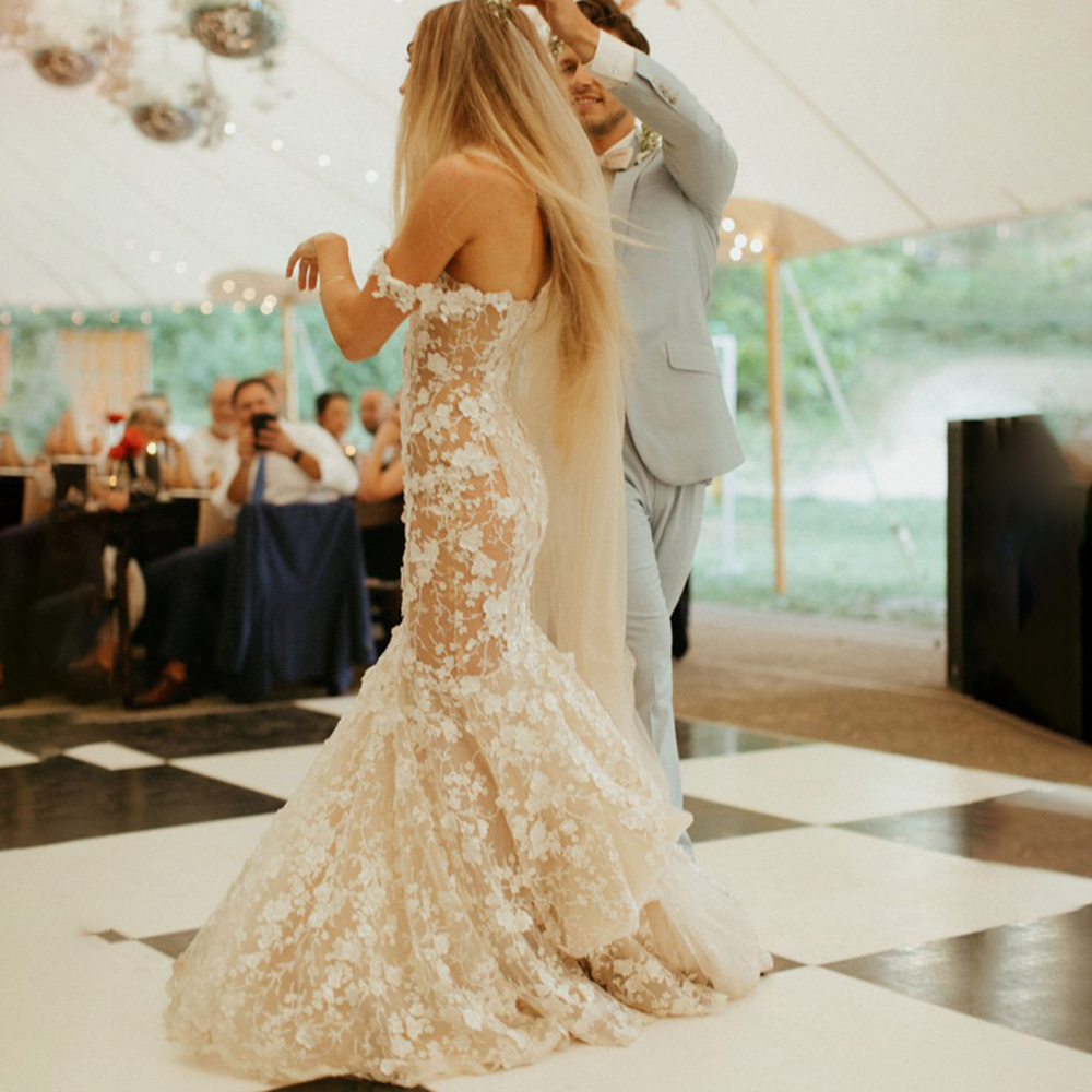 Embrpoidery Sweetheart Wedding Gown Plus Size Open Back 3D Flowers Off Shoulder Sleeve Mermaid Low Cut Luxury Bridal Dress