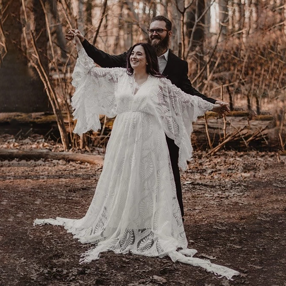 Long Batwing Sleeve Boho Kaftan Bridal Gown Overweight Custom Made A Line Rustic Maxi V Neck Elopement Wedding Kimono Robe Dress