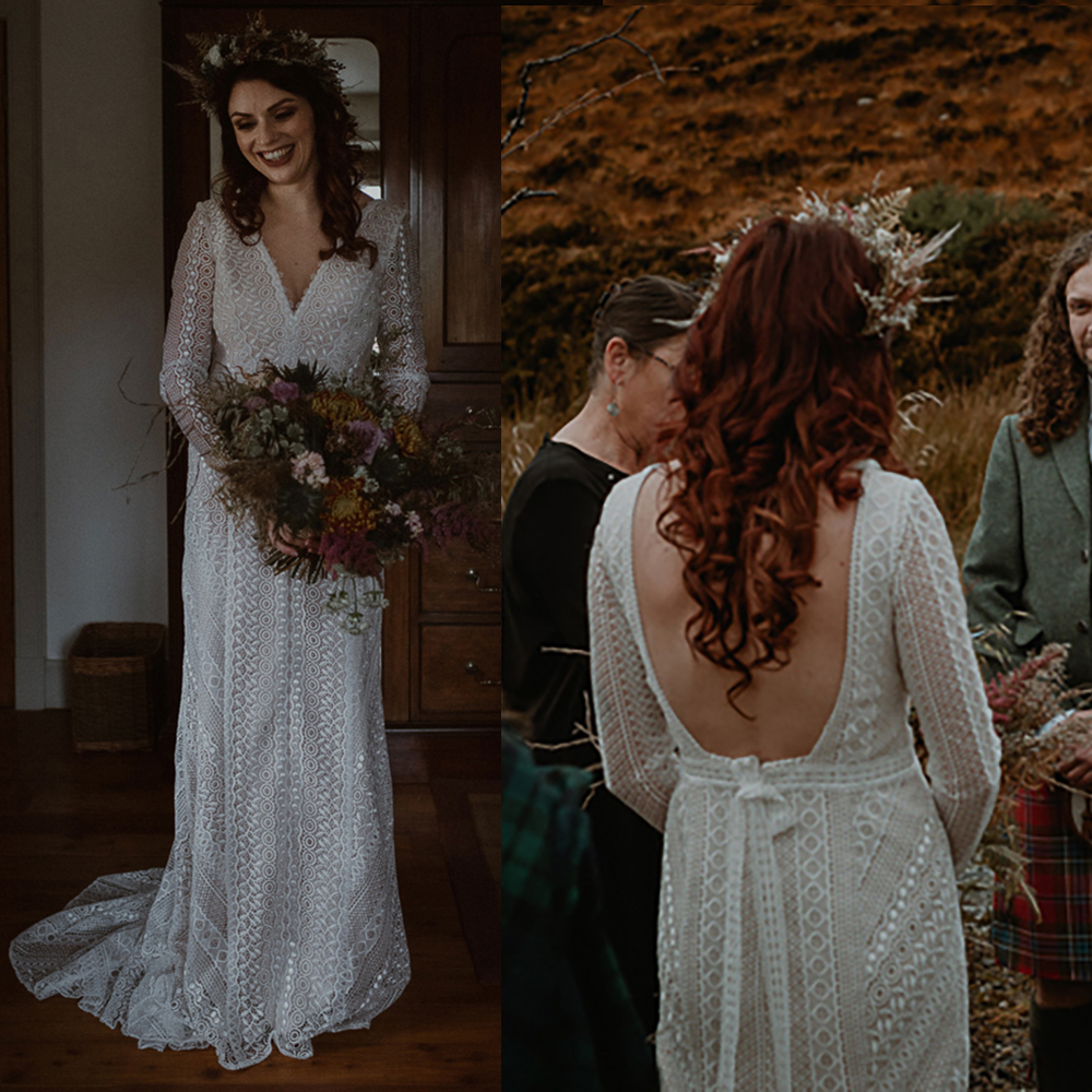 Custom Made Long Sleeves Sheat Lace Wedding Gowns Drop Ship Pus Size Open Back Countryside V Neck Rustic Elopement Bridal Dress
