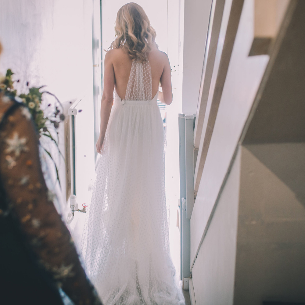 High Neck Star A Line Wedding Dress Custom Made Ivory Sleeveless Cold Shoulder Princess Boho Beach Halter Open Back Bridal Gown