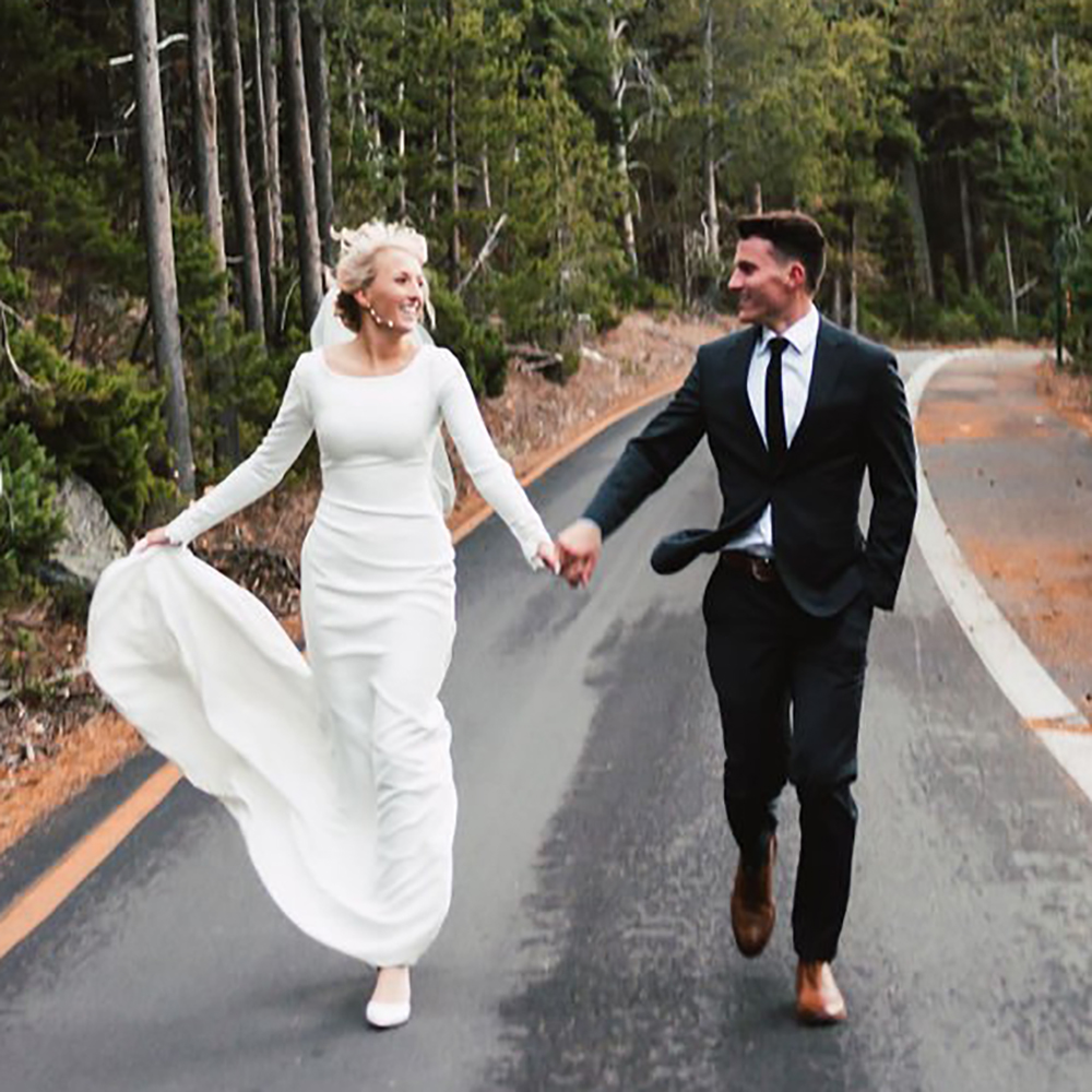 Long Sleeves Muslim Modest Wedding Dress Satin Custom Made Appliqued Lace Crepe Dubai Arabian Brush Train Plus Size Bridal Gowns
