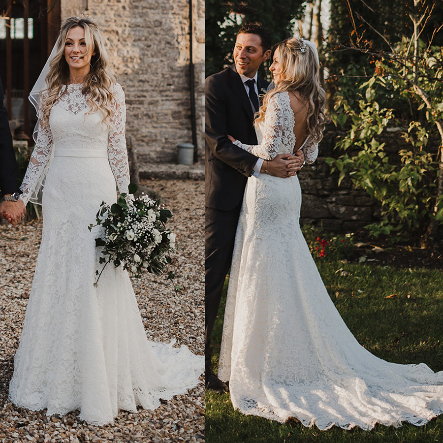 Bateau Boat Neck Long Sleeves Farm Winter Wedding Dress Mermaid Zipper Custom Made Rustic Sheer Lace Backless Bridal Gowns