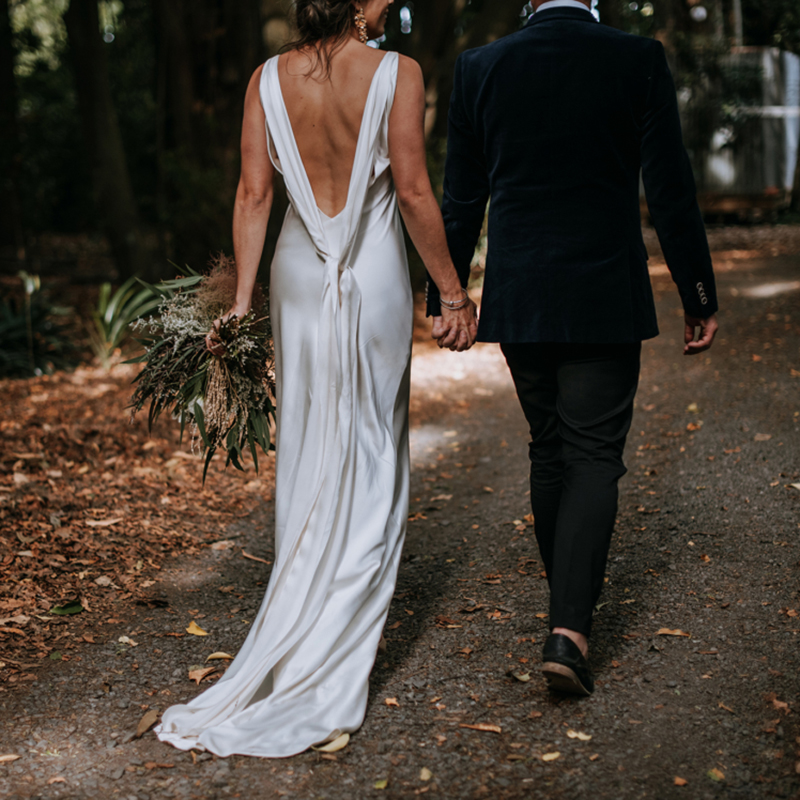 High Slit V Neck Wedding Dress Sweep Train A Line Custom Made Open Back Low Cut Sleeveless Mini Satin Bridal Gown