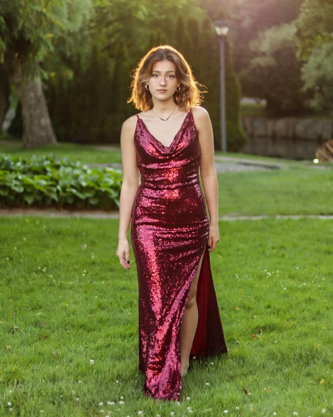 Beautiful Mermaid Cowl Neck Spaghetti Straps Sequins Long Prom Dress