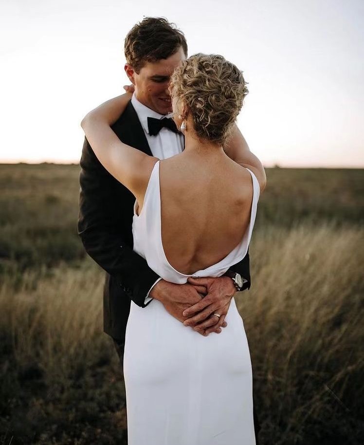 Elegant Crepe Mermaid Wedding Dress Simple Sleeveless Open Back Sexy Modern Bohemia Bridal Gowns