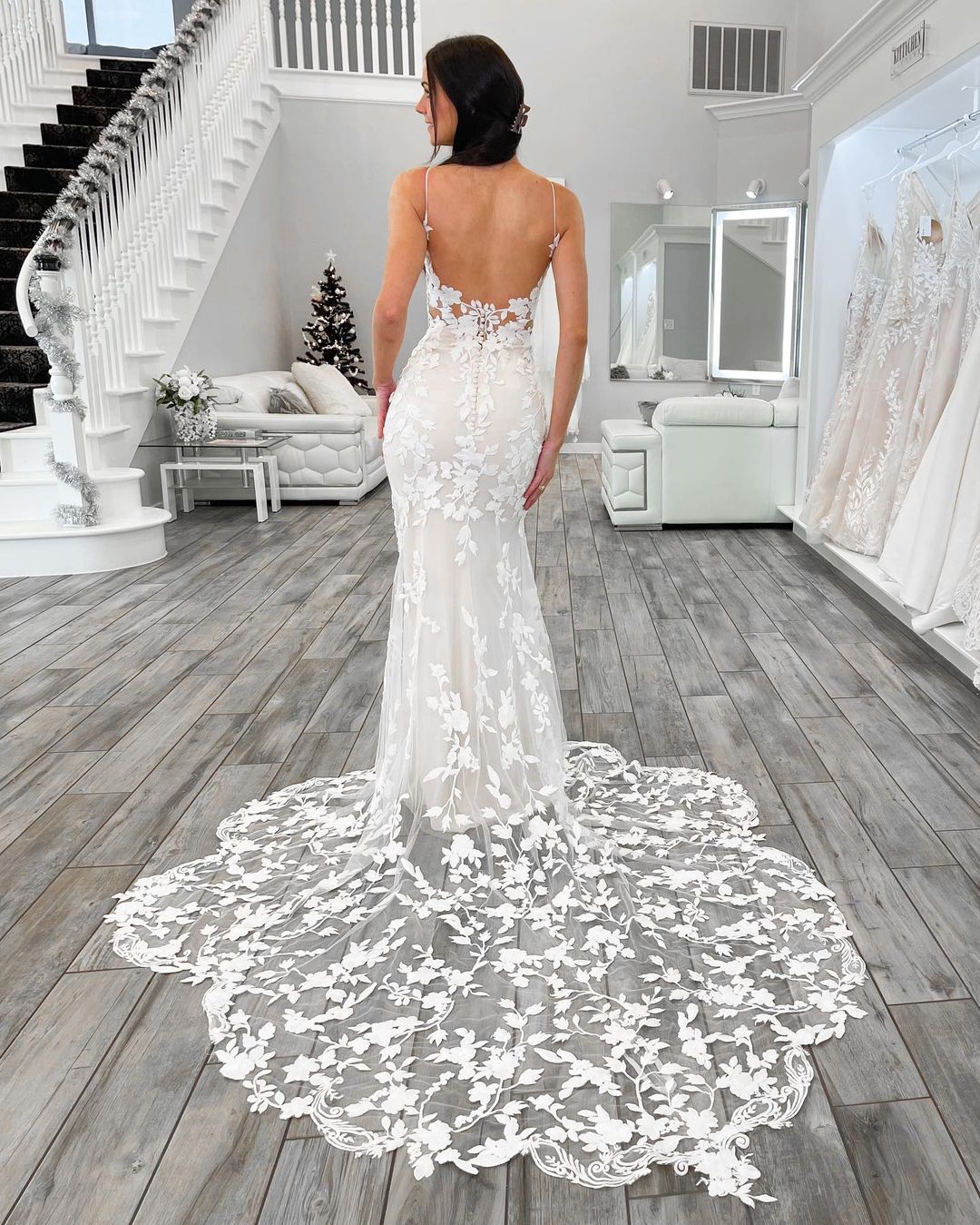 Elegant Mermaid V Neck Lace Wedding Dresses