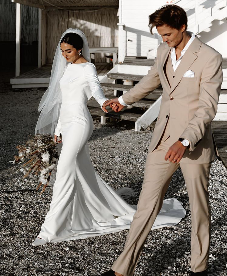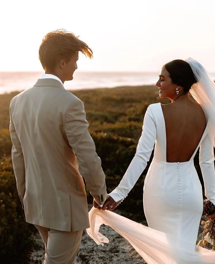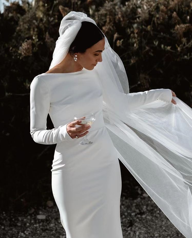 Elegant Open Back Cerpe Mermaid Wedding Dress Long Sleeve Simple Scoop Neck Bridal Gowns