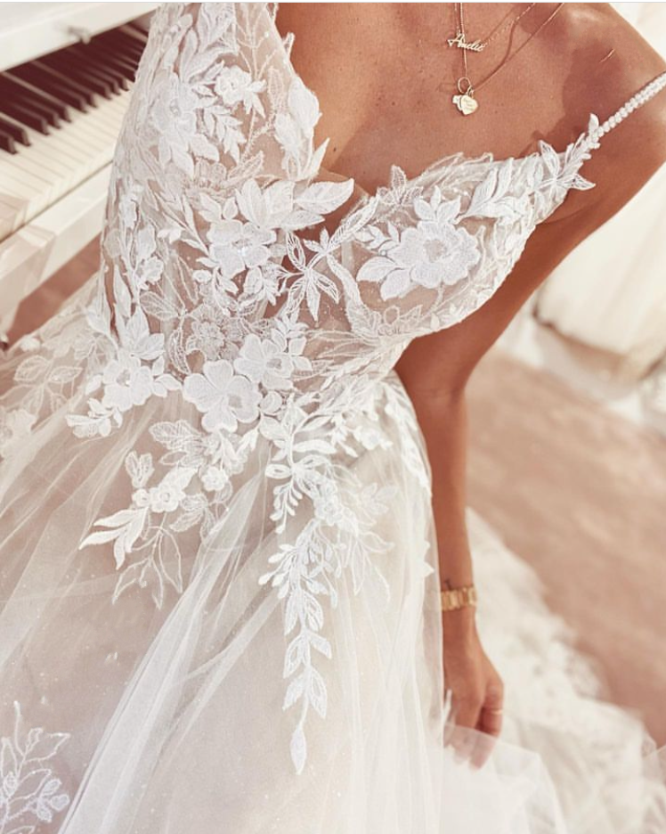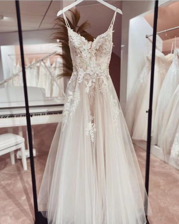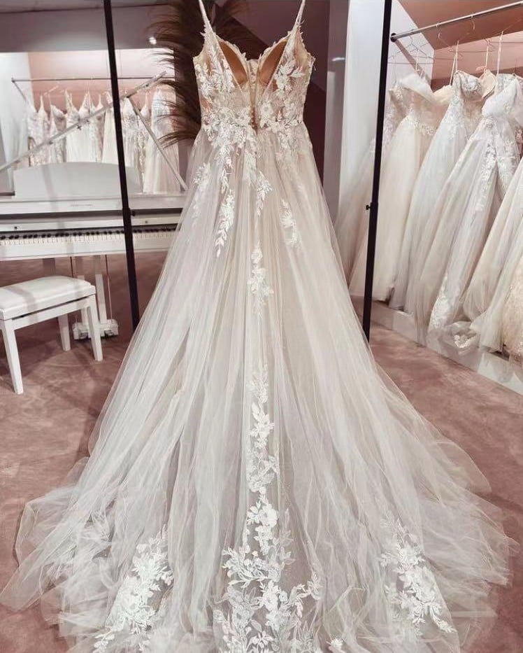 Luxury Lace Appliques Boho Wedding Dress A Line Sexy Spaghetti straps Open Back Beach Bridal Dress