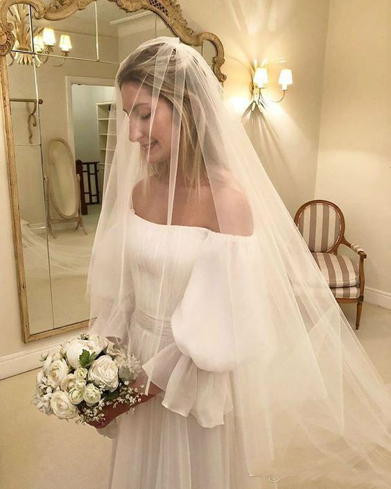 Off Shoulder Beach Wedding Dress, Chiffon Puff Sleeves Wedding Dress