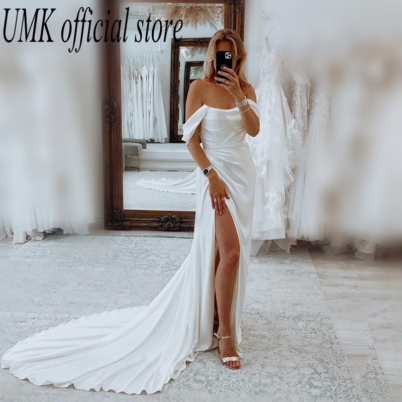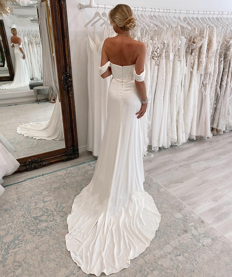 Sexy Crepe Cap Sleeve Mermaid Wedding Dress Modern Boho Front Split Strapless Bridal Gowns