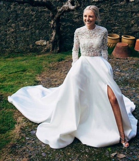 White Long Wedding Dress with Long Sleeves Appiques Flowers
