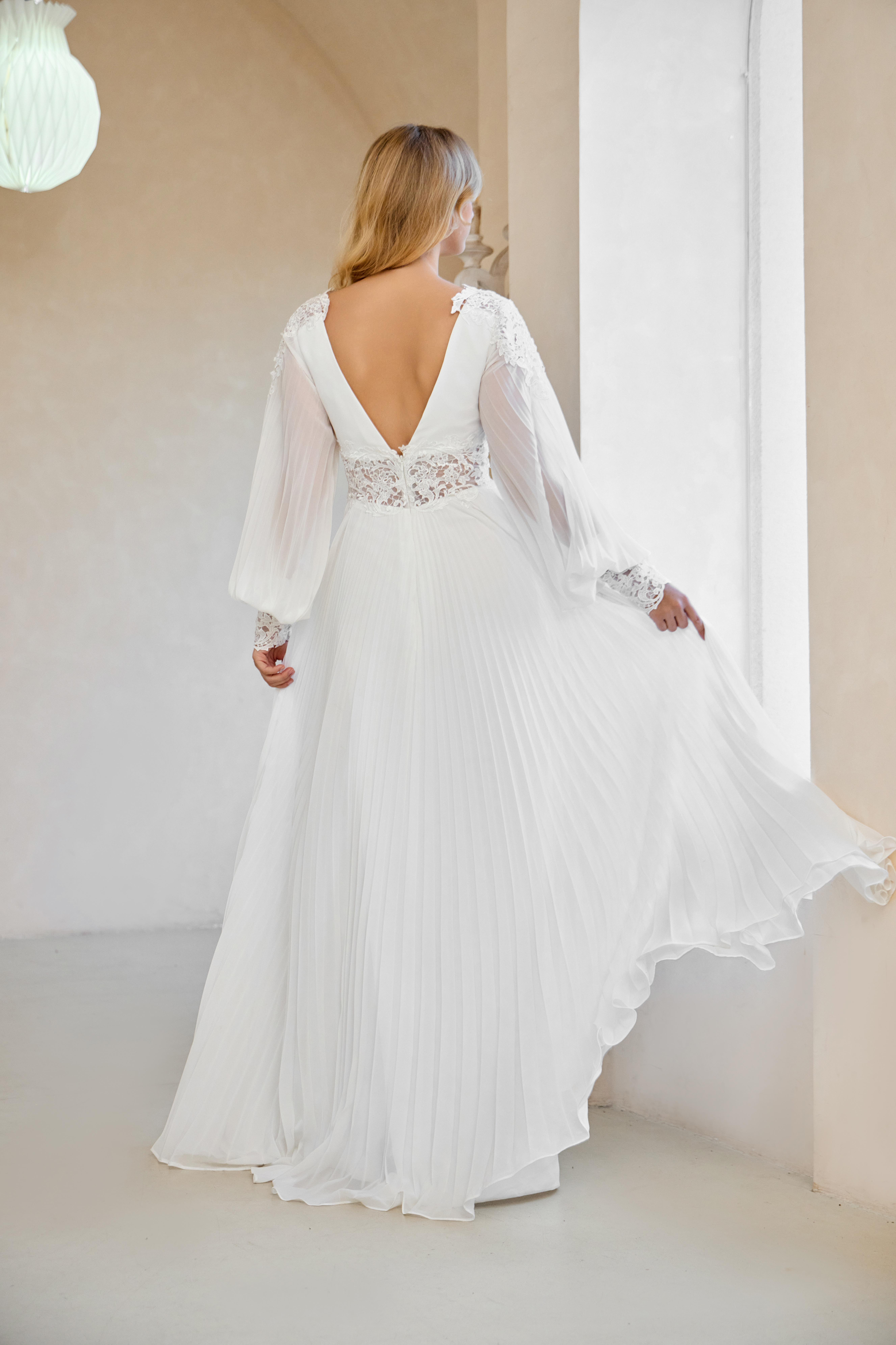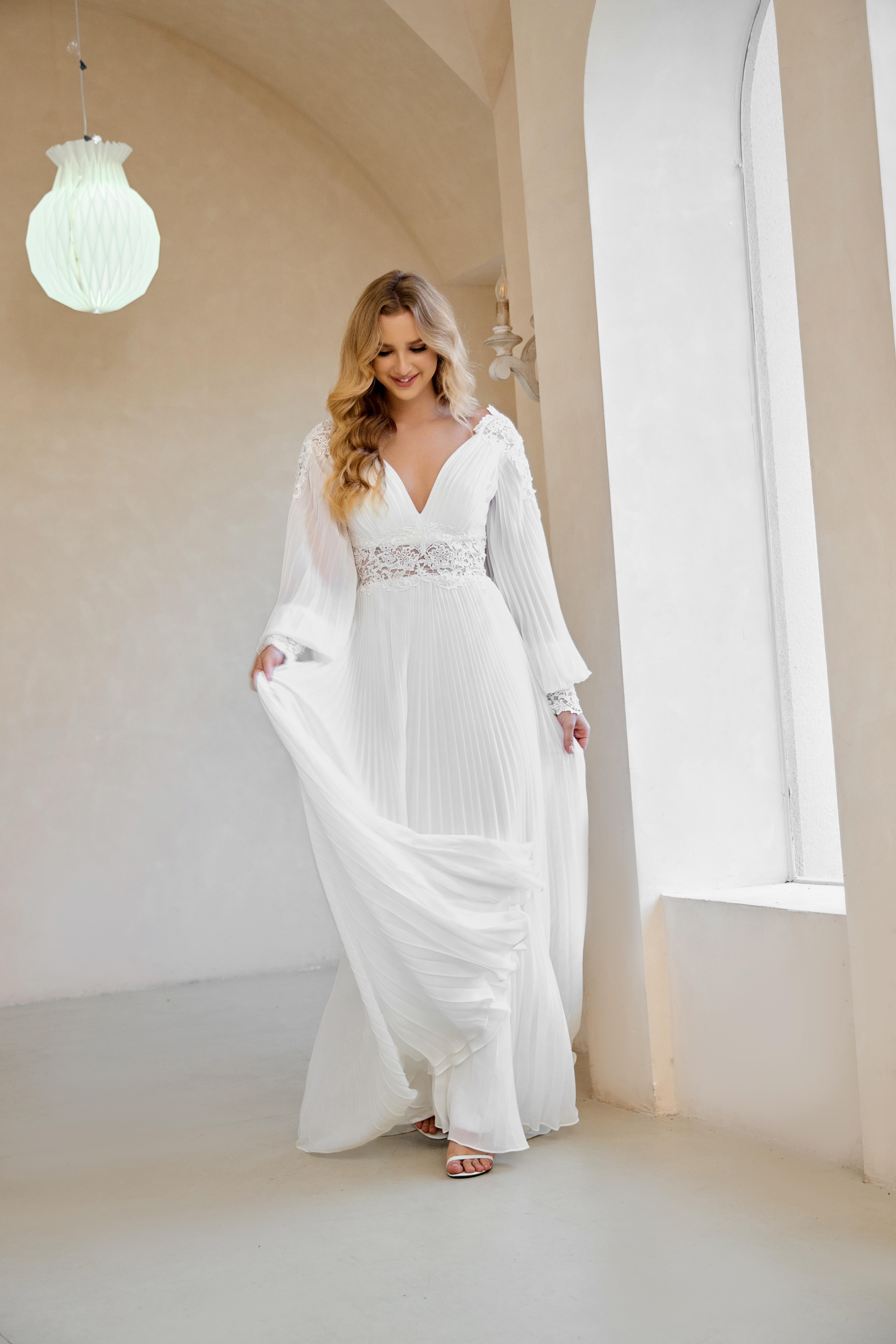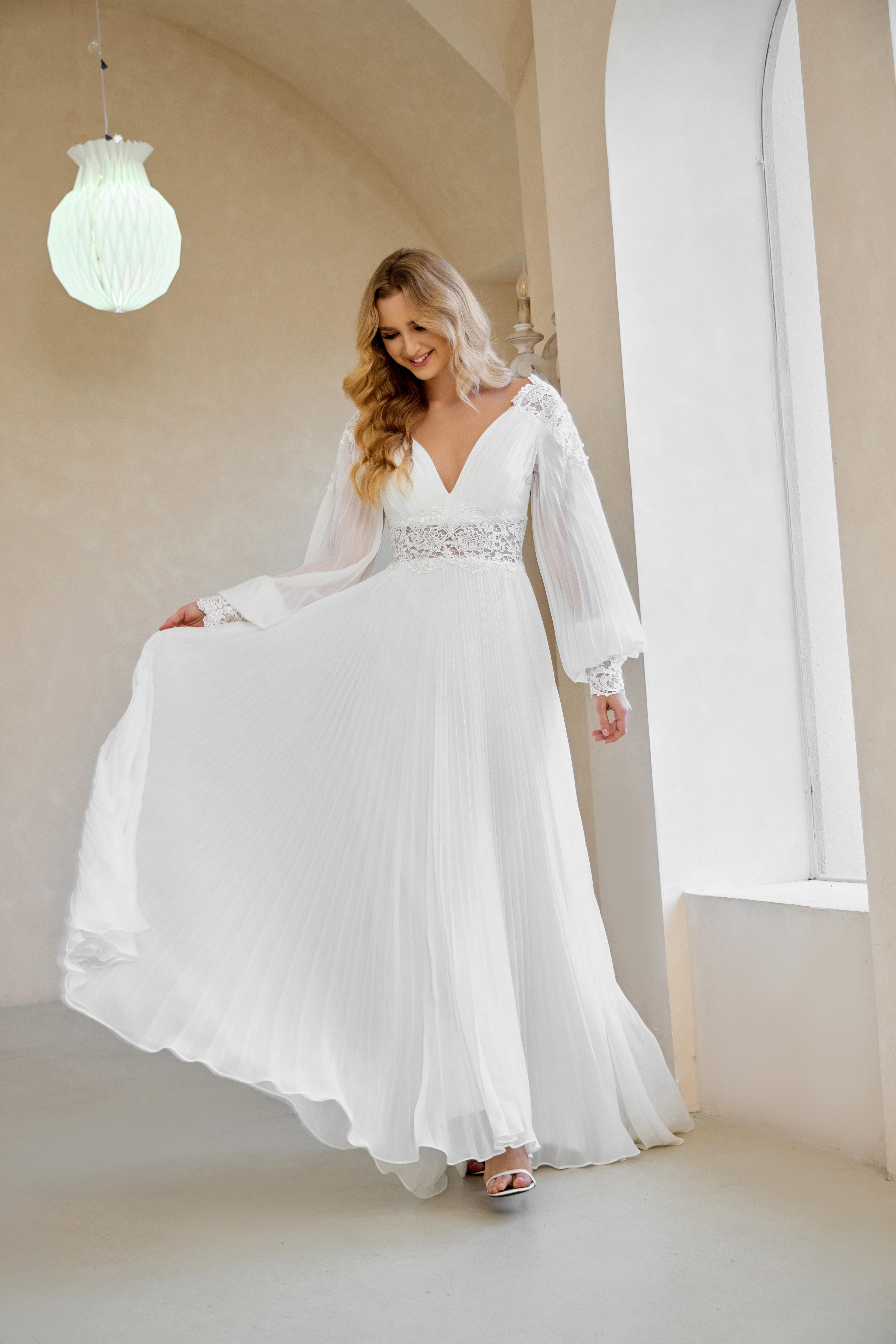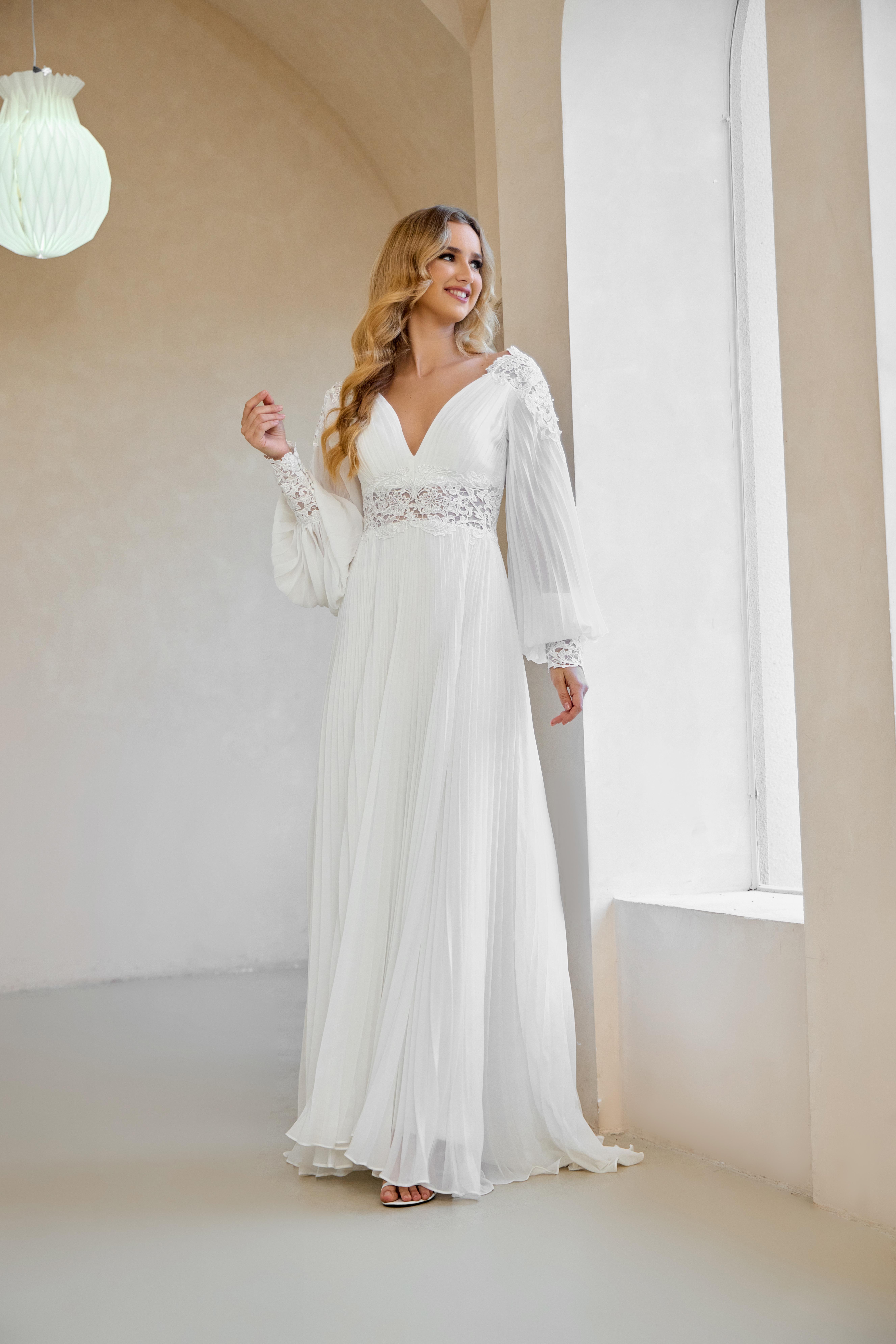 Boho Wedding Dress Long Sleeve,V Neck Chiffon Wedding Dress