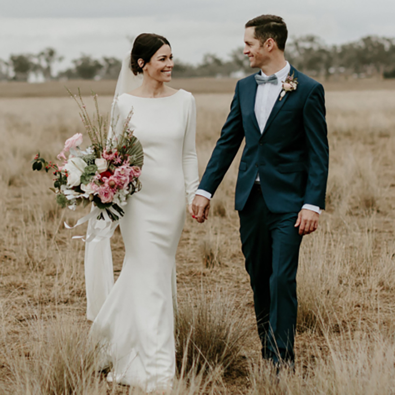 Sheath Crepe Satin Boat Neck Wedding Dress Buttons Custom Made Backless Simple Minimalist Open Back Buttons Ivory Bridal Gown